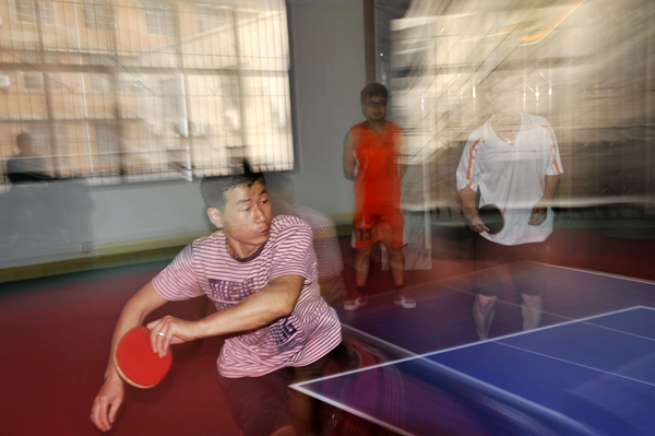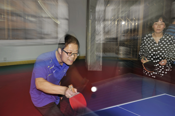今天下午,教工乒乓球赛决赛在初二年级和初三年级之间进行。