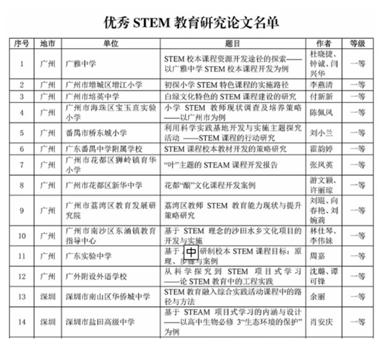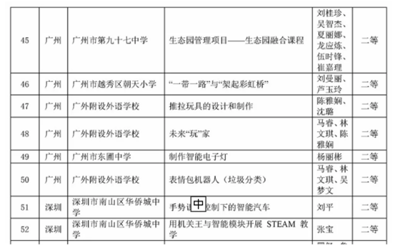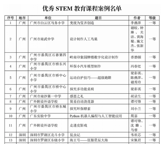近日,广东省教育研究院公布了2019年STEM教育资源征集评选结果。我校小学STEM教师供获9项省级奖项,包括3项一等奖、3项二等奖、3项三等奖。这是我校自去年成为“中国STEM教育2029行动计划”首批种子学校,广东省教育研究院STEM课题学校,国家省市三级课题立项、开题之后,STEM教师取得的又一阶段性成果。