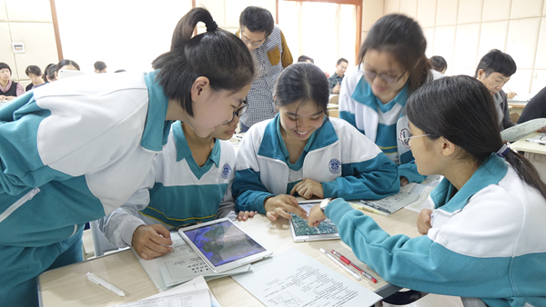“以前老师们上课都要拿教材,现在拿一个平板电脑就行了。”金山老师说,经过一轮学习和实践下来,她认为智慧课堂的最大特点就是精准教学和个性化学习,课前引导同学们通过微课自主学习,课上通过实时互动既能了解每个学生的答题情况,也能看到班级层面的整体答题情况,老师再根据分析数据完善自己的备课方案。 付伟老师也表示了类似观点,他说:“学生的参与度更高了。每个学生都可以直接在平板电脑上做题并上传给老师,老师能即时统计答题结果。还有,学生的课堂积极性也大大提高,比如我今天在课堂上运用到的谷歌地图的操作,学生可以自己动手打开地图,找到正确的地理位置,这种直观的体验感是传统课堂很难企及的。”