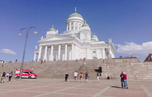 印象最深的,应该是芬兰这个国家吧。初到赫尔辛基,迎接我们的是蓝蓝的天空和暖和的阳光,这令我们有点吃惊,因为来之前做过攻略:芬兰的天气和中国的不一样,广州一年四季都是艳阳高照,芬兰是一年里只有九十天有太阳,其余的天都是灰戚戚的,所以这种大太阳的晴朗天气是在我意料之外的。