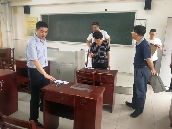 在检查组的监督下,整个监测工作有条不紊,考务人员操作规范,各个环节运转流畅、无缝对接,整个过程控制精确。从密件领取到学生检录、场室安排、监测要求、规范操作、密件回收整理等,每一个现场操作步骤和细节都进行严格严肃的监督与要求。