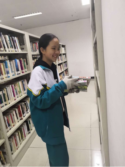 姚子墨、谢佳余 、陈云峰、毕梓珊、周润霓、王文菲负责的岗位是图书管理员,对于这份工作,他们的感受是:图书馆工作人员每天上午整好的书,下午下课的读者就能花几分钟把书变成原样甚至更乱。我们明白了工作人员的辛苦,学会了改掉自己的坏习惯,养成良好的读书习惯,遵守图书馆的规则,做一个优秀的读者。