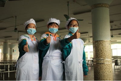 曾誉、周文轩、林煜、禹羿同、邓开、彭雅欣、黄文隽、彭家乐、黄泳瑜、佘雨桐同学的工作地点是饭堂。他们早上6点就起床,7点开始工作,忙碌了一天,他们对饭堂的工作人员有了全新的看法:打饭阿姨与初始的工作真的很辛苦,我们应该充分尊重他们,并珍惜每一粒饭,不浪费。制作过程真的很累,毕竟有上千人吃饭,很难做到没有一丝不完美的地方,我们应该学会包容,谅解,体谅他们的不易,换位思考。