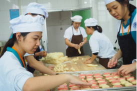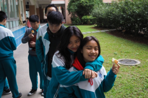 下午三点半,我们在饭堂三楼做点心,我们不禁被饭堂的高级机器折服。有一个是和面机还有搅拌机。我们小组两个男生在煎鸡蛋(因为女生都不会),另外三个女生跟着饭堂阿姨学习做面包。我们做了香肠包与椰蓉包,还煎了一大筐子的蛋。
