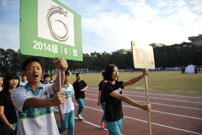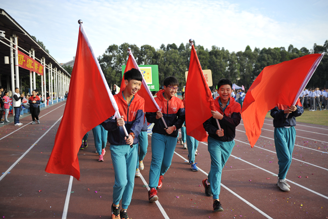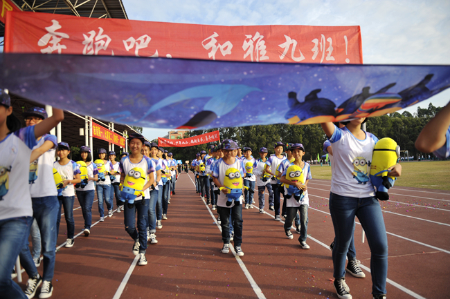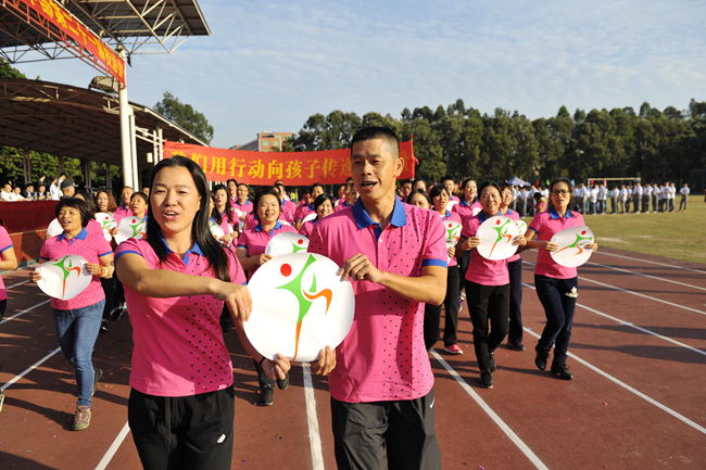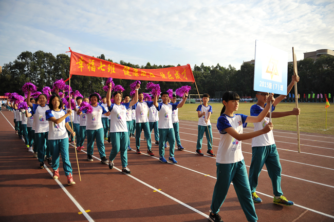 第二十二届 初中部运动会今天上午拉开战幕。气温骤降,赛场温度却骤增。枪声未响,团体赛率先亮相,各个班级比服装、比整齐、比口号、比创意、比面貌……。开幕式上,不仅多了家长方队,还出现了运动员方队和团委学生会方队,焕然一新的队伍逐次接受老师们的检阅——