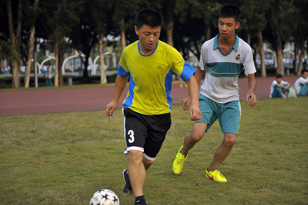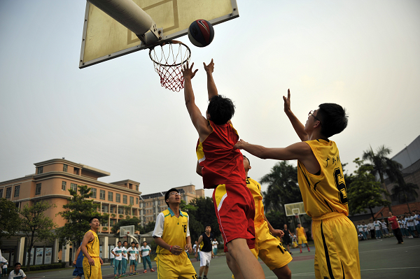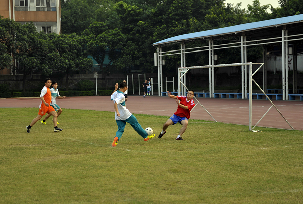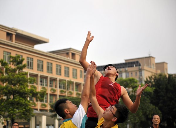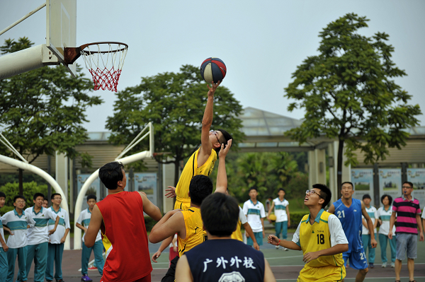 9月10日教师节,在学生田径场、羽毛球场、篮球场,老师与学生在赛场上火力全开、一争高下——
