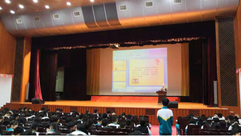 11月27日晚,谭老师为初二年级组全体同学在黄华楼礼堂上了一堂国学课。作为一名少年监管所的警官,他认为法律并非最好的管教方式,应从道德根本上感化、熏陶民心。谭老师上台礼数的周全、谈吐的随和无不显示了他对中华传统文化的尊敬与信仰。