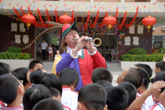 应南方电视台的邀请,挪威一名艺人走进校园为同学们表演。