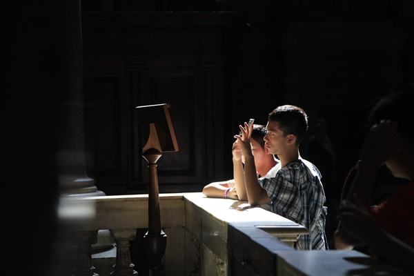 教堂内,团员们用手机纪录下厚重的欧洲历史。