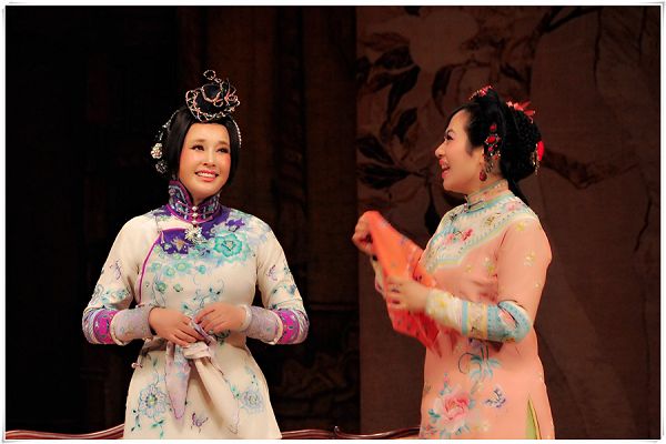 六十一岁的刘晓庆堪称风华绝代,又不失神秘色彩,一套套极具中华传统风韵的华服更是将她衬托得婀娜多姿。舞台上的她收放自如、张弛有度,视听高潮迭起。整台演出刘晓庆共换装6次,每次时间都很短,最后一幕赛金花与魏斯炅结婚的桥段,刘晓庆要“一分钟变新娘”。