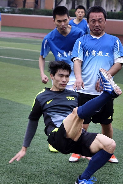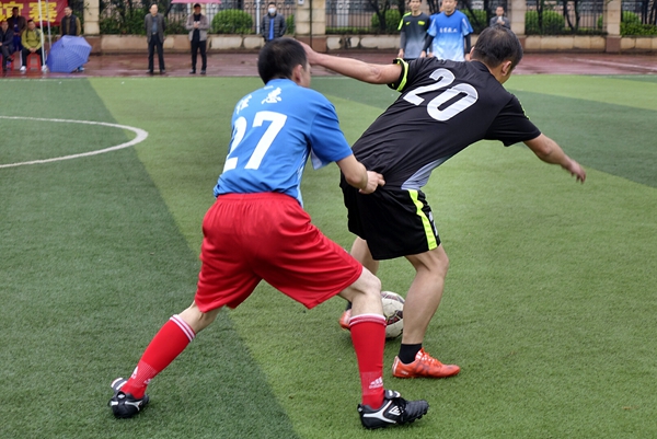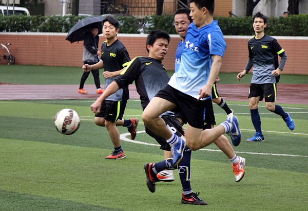 比赛期间,时断时续的春雨并没有影响两队发挥,小场地七人制的比赛因强调传递和配合而大大提高了观赏性,很多返校同学打着伞看完比赛。最后,我校教工足球队凭借主场优势,以5比3赢得比赛胜利——