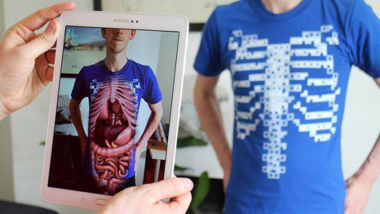 国外一家名为Curiscope的创业公司致力于将VR和AR混合在一起,他们的Virtuali—Tee(虚拟T恤)允许用户在自己的胸腔内窥视自己的身体内部构造。