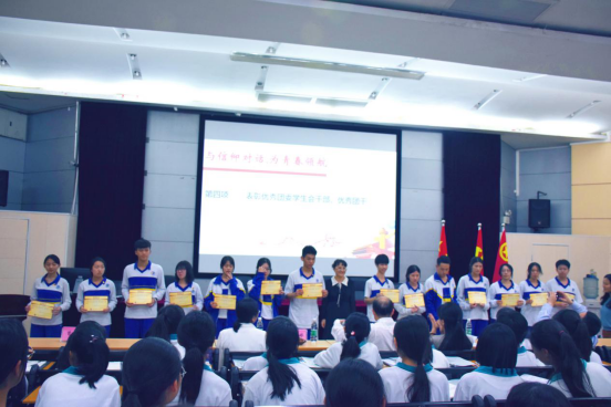 随后,校长万清华表彰了我校2019年优秀团委学生会干部及优秀团干,这不仅仅是对大家过去工作学习的认可,更是对未来的激励和前进动力。副书记李小萍及各学部领导为获奖同学颁发了荣誉证书。获奖者昂首阔步,意气风发;台下者欢呼祝贺,目流羡情,心中早已定下坚定目标。
