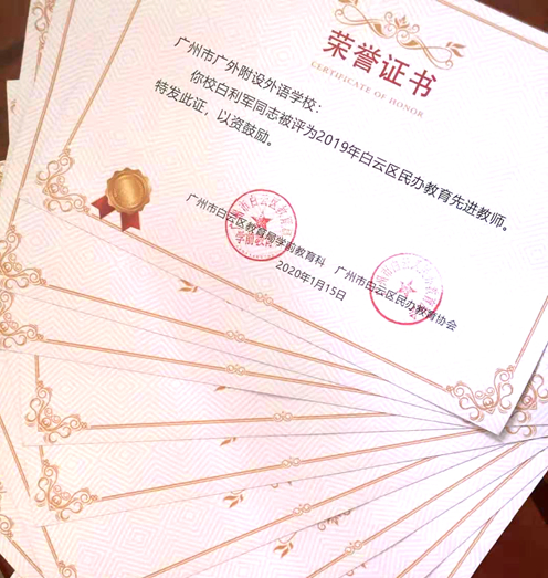 近日,从白云区民办教育表彰大会上传来消息,我校荣获2019年白云区民办教育先进单位称号,19名教师荣获先进个人称号。