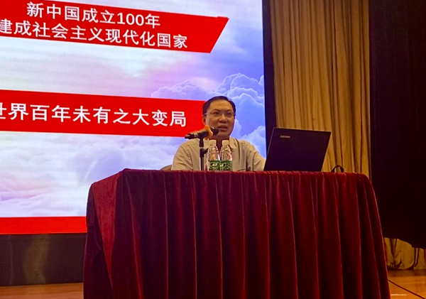 刘海春教授运用大量详实的历史资料,从新民主主义革命时期、社会主义革命和社会主义建设时期、社会主义现代化建设新时期、中国特色社会主义新时代四个方面与听众进行分享解读,系统回顾了中国从落后走向富强的艰辛岁月和辉煌历程,展现了中国共产党带领中国人民实现中华民族伟大复兴的辉煌成就。