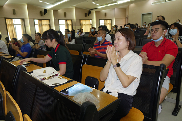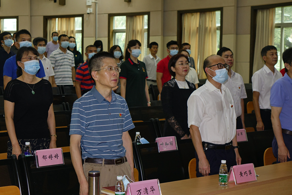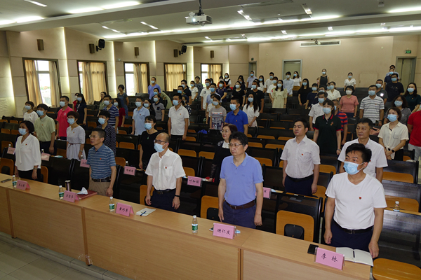 大会在庄严隆重的气氛中开始,全校党员认真听取了习近平总书记的七一重要讲话,会议室里不时响起阵阵掌声。