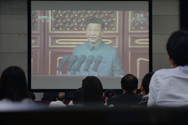 7月1日,庆祝中国共产党成立100周年大会今天上午8时在北京天安门广场隆重举行,中共中央总书记、国家主席、中央军委主席习近平发表重要讲话。广外外校全体党员集中中学阶梯教室,认真收看中国共产党成立100周年庆祝大会直播。