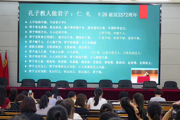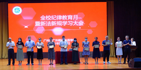 为深化师德师风建设工作,提高教职工的思想政治素质和职业道德修养,9月29日,我校召开全校纪律教育月暨新法新规学习大会。全校教职工参加会议。受疫情影响,此次大会分黄华楼礼堂、中学阶梯教室、小学阶梯教室三个会场举行。会议由副书记李小萍主持。