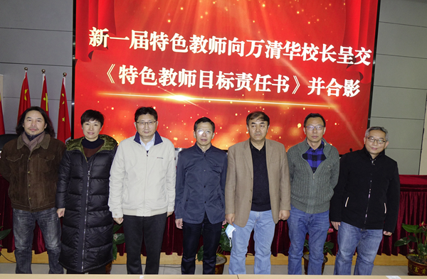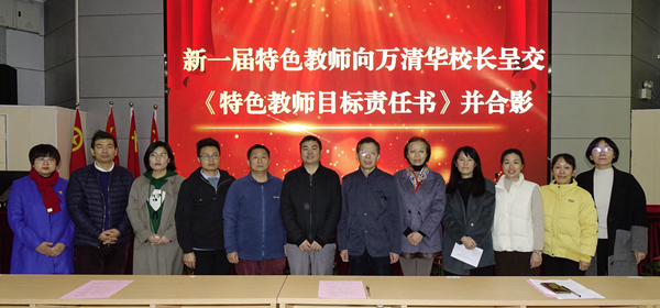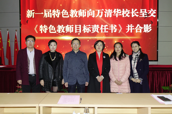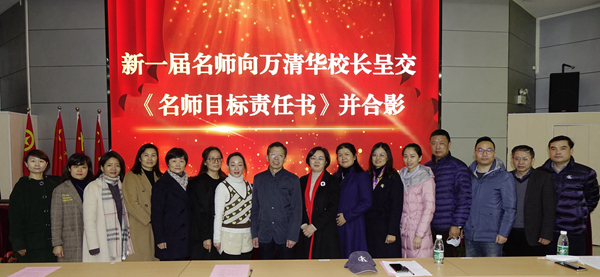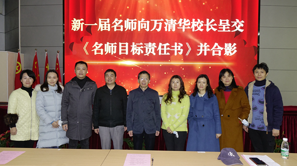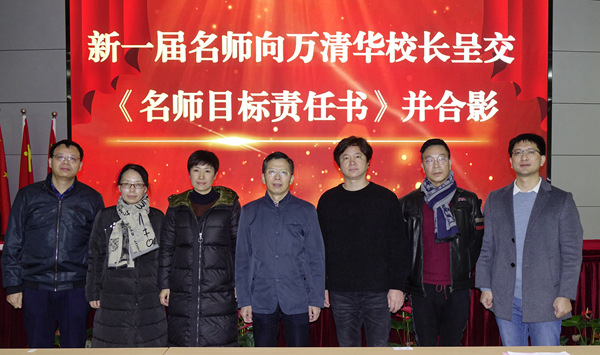 12月28日,我校新一届名师、名班主任、特色教师聘任仪式在中学阶梯教室举行,64位教学名师与学校正式签订目标责任书。