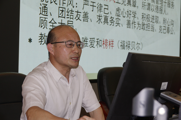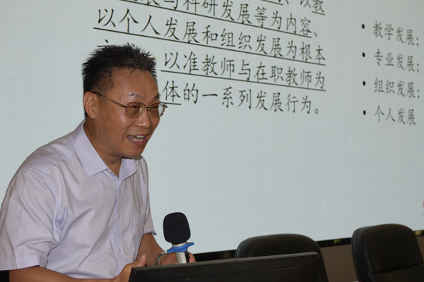 董金伟教授的讲座主题为《教师专业发展与学校有效管理》。董金伟以教师学习共同体为观察视角,结合多年来对教师专业发展的问题与出路、教师学习共同体建设、新时代的教育管理理念等方面的研究,让在座教师对日常教育教学工作进行了一次审视和反思。