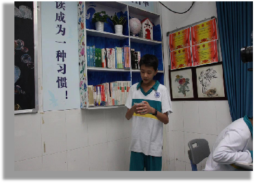 活动伊始,由High五班打头阵。初二五班的班级特色包括诗书气息浓郁的图书角,简单大气的黑板报,班级奖项及小组的精美海报。班级的同学们崇敬篮球巨星科比,内心时刻铭记曼巴精神,将动力内化于心外化于行,并引用科比的名言:“你见过凌晨四点的洛杉矶吗?”励志要朝乾夕惕,功不唐捐,刻苦勤奋,见到凌晨四点的校园早晨。