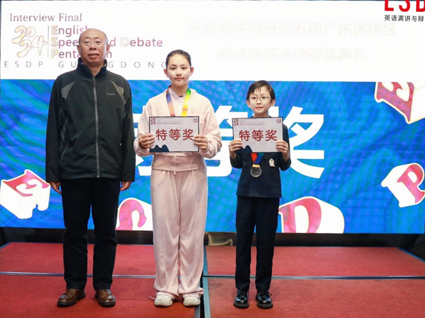 为了拓展学生眼界,培养英语学科素养,我校小学各年级的学生积极参与校外活动。 近日由21世纪英语演讲与辩论中心主办,英语演讲与辩论五项广东组委会承办的 2024年ESDP英语演讲与辩论五项比赛圆满结束,我校小学部选手经过激烈的角逐,在主持与面试展评中取得了优异的成绩。