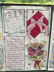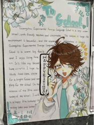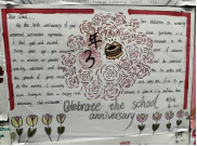 在外校30岁生日之际,高一的同学们用精心的设计、多彩的图画、暖心的话语表达对外校30华诞的祝福,他们以爱的表白作为主题,将这份祝福化作最美的礼物呈现给外校。中学教学楼中庭弥漫着爱的氛围,手抄报展板闪耀着温馨的光芒。高一的同学们积极参与,用每一笔每一画、每一句祝福语,在画布上绘出对外校往昔的回忆和未来的美好祝愿。而富有创意的设计更是让人赞叹不已。他们巧妙地将“30”和爱的元素相融合,构思出独特的图案,将这份祝福呈现得淋漓尽致。重要的是,高一的同学们用暖心的英文表达了对外校30华诞的祝福。这些话语简短而真挚,透露出他们对外校的无比感激和深深的情谊。愿这份爱如同春风般温暖外校的每一个师生,让这份爱如同阳光般照耀外校的每一个角落。愿外校的明天更加美好,愿爱与祝福永远伴随着外校前行的脚步。在这个特别的30岁华诞,高一的同学们用心灵之笔书写了一段珍贵的回忆,谱写了爱的华章。