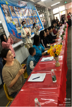 广实外校初中部第五届饺子大赛12月3日14:30在学生二饭堂如期举行。当天下午两点第二饭堂已经是熙熙攘攘的人群了,家长领着孩子们签到入场后,找到自己的位置,把带来的食材、工具拿出来做准备工作。
