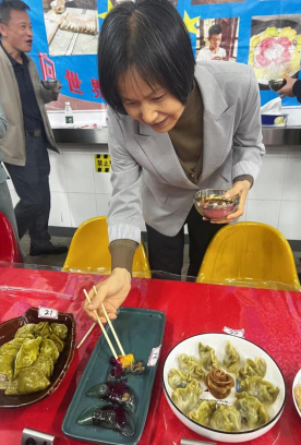 评委老师们非常认真地根据饺子的色香味给每一个作品打分。体现出了参赛选手的创意。我们不辜负任何一位努力付出的人。