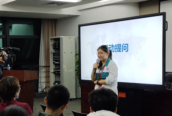 首先,杨余馨老师向同学们展示了真实的飞行中从登机、起飞到安全须知、落地等各个环节的中英文音频视频,让同学们了解了教科书之外的最鲜活的英语应用。同学们在杨老师的鼓励下,积极踊跃地上台尝试配音,展示自己流利的英文口语。