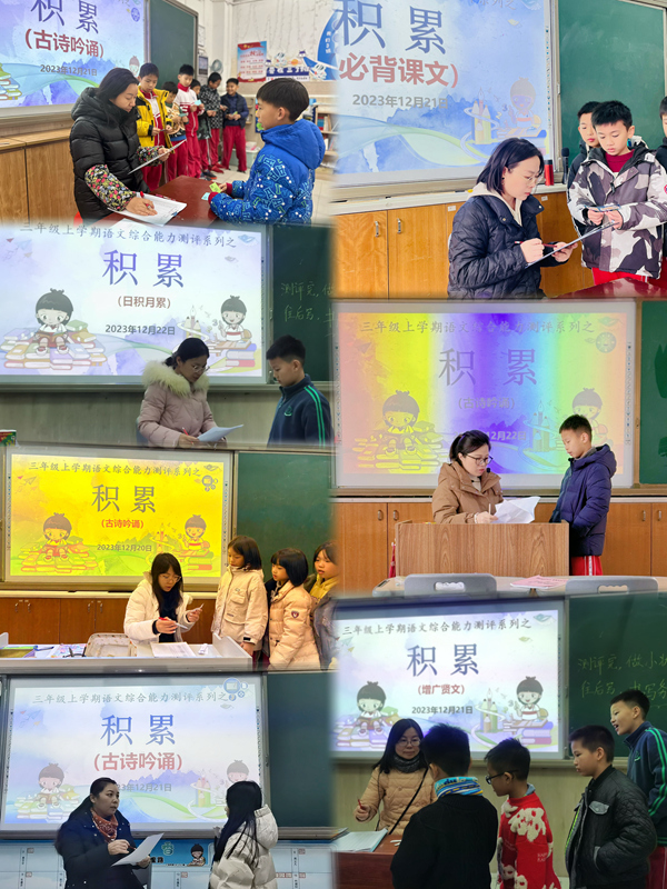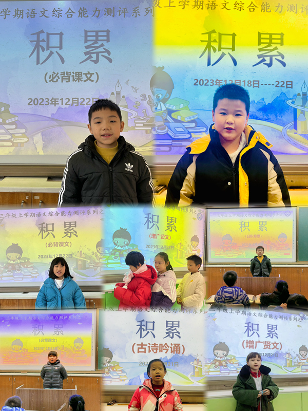 不知不觉就到了三年级上学期的尾声,为了更好地关注学生的学习过程,三年级语文备课组于12月20日至25日开展了阳光评价活动。评价活动共有五项内容,范围分别是古诗15首、增广贤文20条、成语接龙、必背课文及语文园地的日积月累,综合而全面地考察学生对优秀传统文化及本学期所学基础知识的积累情况。