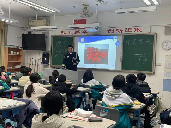 本周我们有幸邀请到了罗梓宸爸爸为我们主持班会“警察与安全”。周日晚,身穿警服的梓宸爸爸走进班级,随着掌声落下,他开始了他的讲解。