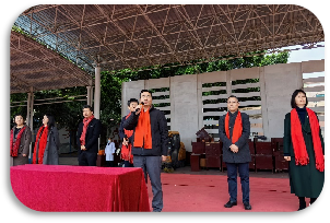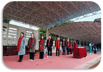 典礼第一项:升旗。担任此次升旗的任务是初中部第九届团委学生会。他们来自初一初二年级各班,他们的格言是“越努力越幸运”,他们带着为师生服务而来,带着对全面发展而来,带着对突破自己而来,带着对卓越成长而来,在新的学期他们将在各项活动中贡献自己的力量。