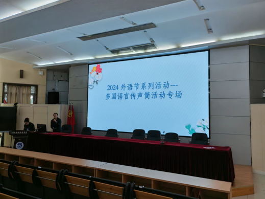 首先,由第二外语各语种老师给学生做示范,随机抽取不同语种简单的句子,然后依次扮演传声筒的角色,最后一位老师再大声地把自己听到的句子读出来,之后再由对应语种的老师核对发音是否准确,同时简单地解释该句子的意思。