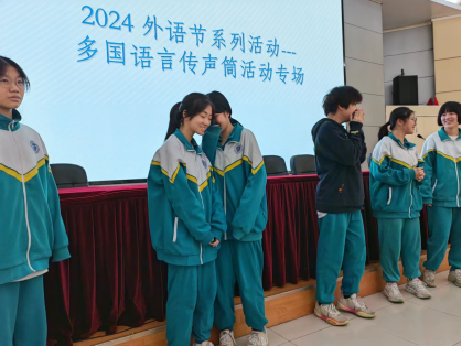 2024年3月8日上午,为了激励学生学习第二外语的兴趣,活跃第二外语的学习氛围,广州市实验外语学校初中部举办了外语节系列活动之多国语言传声筒活动。