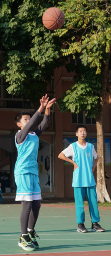 那是一个风和日丽的下午,风带来点点惬意,染绿了大榕树新抽的枝芽。下课铃伴随小乌鸫的鸣叫声打响,不一会儿,球场上就聚满了人,11班球员的天蓝制服也出现在了球场中央,他们早已开始了赛前热身。场边,我听见有其他班的同学在窃窃私语: “以11班的实力,这样的对手还不是稳赢吗?他们怎么还那样紧张的备赛呢?”我看向他们,他们依然有条不紊的练习着,一个个把球投向篮筐。而此时,我们的对手班级才刚刚到达球场。