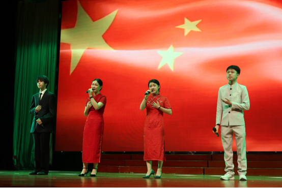 声乐社成员叶楚婷、何子昊、李文森、肖玥希四位同学带来了歌曲串烧表演《不忘初心》《好运来》为本次演讲大赛暖场,出色的表演迅速点燃全场。