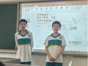 在孩子们的招呼下,初一(3)班的家长们陆续进入课室,开始了一场由孩子们主持的家长会。在学生们一波又一波的“彩虹词”轰炸下,历史老师刘强、英语老师陈君、语文老师兰佳、政治老师冯楚婷和班主任符后爽等各科任课老师带着开怀的笑意依序出场。