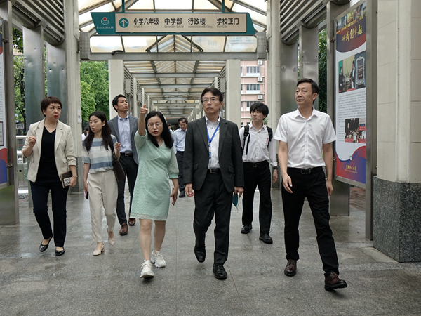 5月20日,广州日本外籍人子女学校校长大久耕一行5人前来我校进行交流访问。执行校长熊士军、副校长郭英涛热情接待了参观团一行。