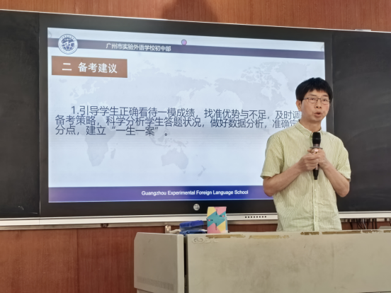 接着初中部刘军勋副校长对初三年级老师们表达感谢,他表示,备考工作繁重,但过程中看到老师们以校为家,孜孜不倦的付出,相信三年的努力必定会助力孩子们取得优异成绩。接着刘校对后期备考工作提出要求: