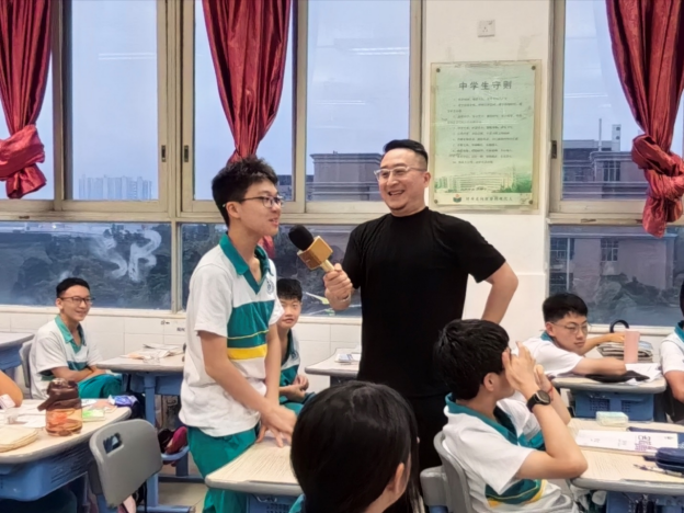 5月19日,周日晚上,我们初二(3)班举办了一场别开生面的家长课堂,这次可是有大咖来啦!是的,他就是我们班孙加熹同学的家长——广州广播电视台主持人嘴记(孙豫)老师!