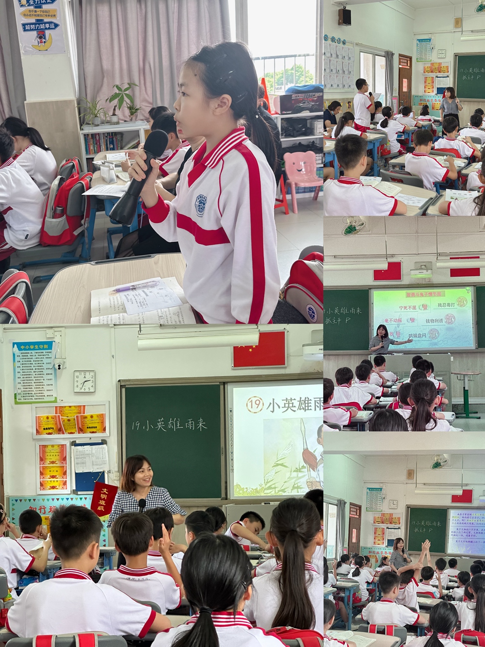 在《小英雄雨来》的教学中,蓝老师巧妙地设置了“招募红色宣讲员”的任务情境,以此引导学生深入掌握长文的阅读技巧。她着重强调“抓住主干”、“讲述细节”以及“运用景致描写”这三个关键点,帮助学生系统地梳理雨来的成长历程,深入探究他成为小英雄的深层次原因,并逐步完善雨来的成长进阶图。 在讲述细节的环节中,蓝老师特别注重引导学生体会雨来与鬼子之间的三次交锋,通过细致入微的描绘,让学生深刻感受到雨来的机智勇敢和坚强不屈。通过多种形式的阅读活动,雨来的“英雄之举”在学生的心中逐渐变得丰满而立体。这一教学方法不仅提高了学生的阅读兴趣,也有效地提升了他们的语文综合素养,使学生在学习长文的过程中,既掌握了阅读技巧,又深刻理解了文本的内涵。