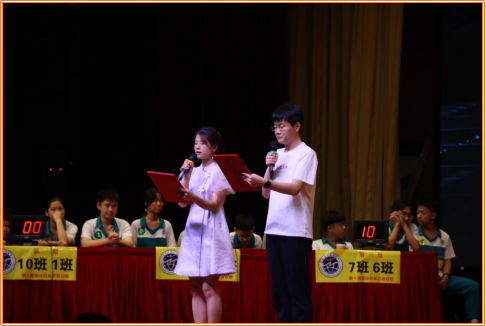 在嘉宾和同学们热烈的掌声中,主持人刘蓉老师和边庆川老师宣布活动开始。初二年级的十二个班级通过抽签,每两个班组队,共计六支队伍参赛,队员们喊着响亮的口号精彩亮相。