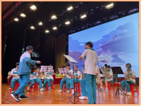 初二11班卢梓伦同学带来的歌曲《身骑白马》以及由初二年级学生自发组织的“爱芙”乐团带来的曲目《洄映的漩流》又将现场的氛围推向又一个高潮。