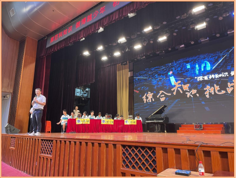 在这春夏交替的日子里,我校初中部迎来了一年一度的科技节。作为科技节的重头戏,第十四届综合知识挑战赛于5月28日晚在黄华楼盛大举行。此次挑战赛以“探百科知识,做博学少年”为主题,旨在通过丰富多样的知识竞赛形式,激发同学们对科学知识的热爱与追求,培养大家的团队协作能力和创新思维。