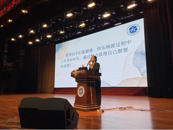 紧接着,优秀教师代表孙老师上台发言。孙老师结合自己多年教学经验和生动学生故事给同学们结束初中体育与小学区别,统考学科,课程设置,课程所需品质和认真学习带来的蜕变等等,同学们聚精会神,受益匪浅。