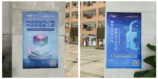 今年的安全周期间,学校通过宣传栏、电子屏、海报展示等多渠道,积极开展网络安全主题宣传,营造校园安全上网、依法上网的良好氛围。