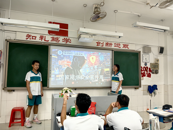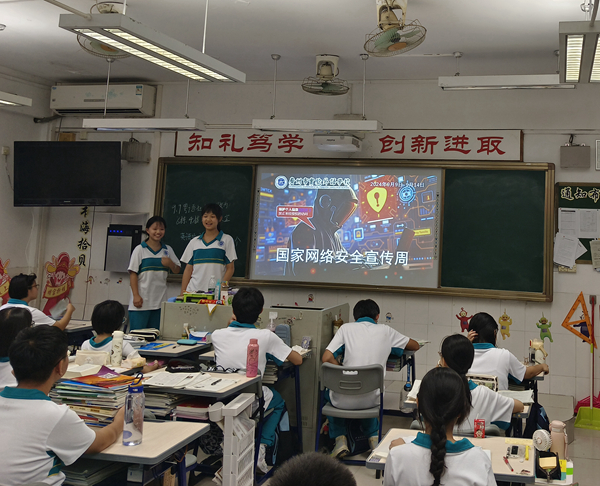 学校还通过举办“网络安全进校园”主题班会、国旗下的讲话等活动,对同学们进行国家网络安全主题教育,就手机电脑上网安全、网络购物安全防范、常见网络诈骗手法及防范、网络安全防骗指南等方面进行讲解、科普,让青少年真实体会到网络安全的重要性。