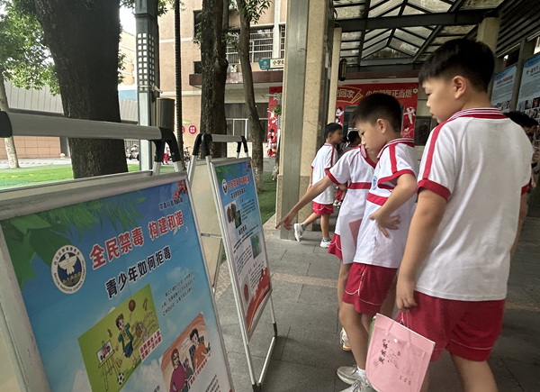 校园禁毒宣传长廊通过图片、文字等形式,生动直观地科普了禁毒历史、禁毒成果、法律法规、毒品危害等知识,以及毒品给个人、家庭、社会带来的危害,吸引了一批学生驻足观看,达到了预防宣传教育作用。