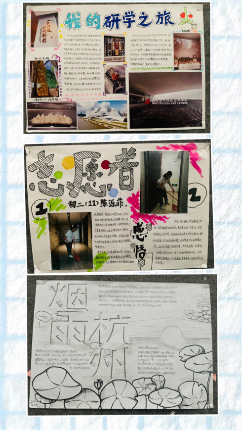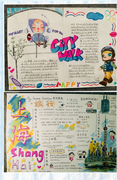 为了更好地帮助学生回顾假期的收获,记录自己成长路上的所见所闻所思所想,初中生活部组织学生们开展了“我的暑假生活”手抄报活动。五彩的画笔经过同学们的手,将一张张白纸变得绚烂起来。一起来欣赏孩子们快乐充实的暑假生活吧!